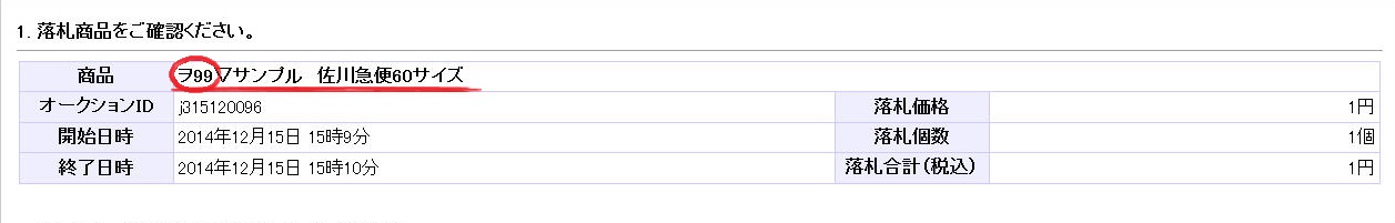 オーダーフォーム入力ページにて、ご落札いただきました商品名をご確認ください。 当方では管理番号を振り分けており、なにかお問い合わせがございます場合は、その文字列にてお問い合わせください。 管理番号は、タイトルの一番冒頭、ひらがな・カタカナ・アルファベット + アラビア数字で構成されています。 サンプル画像ではヲ99と表示しております。 ![]() |